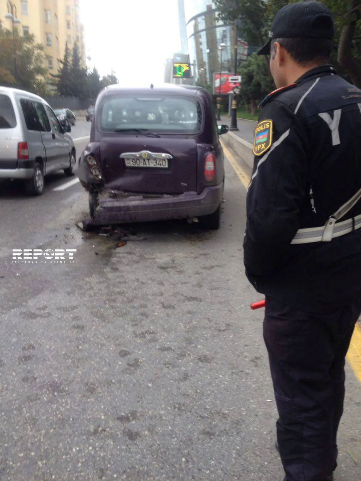 Баку. 13 октября. REPORT.AZ/ Автомобиль, управляемый сотрудником AzTV, столкнулся с "лондонским такси".