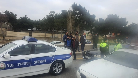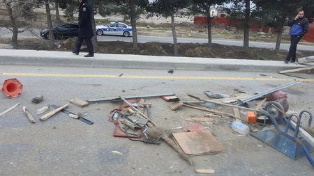 Столкнулись легковой автомобиль и грузовой автомобиль марки "УАЗ", принадлежащий Государственному агентству автомобильных дорог Азербайджана. В результате грузовик перевернулся, находящиеся в автомобиле люди получили травмы. Оба автомобиля серьёзно повреждены.