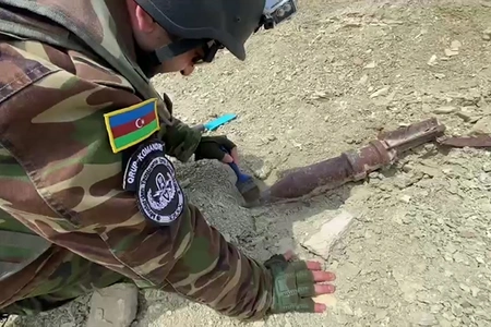 На горячую линию "112" Министерства по чрезвычайным происшествиям Азербайджана поступила информация об обнаружении боеприпаса вблизи села Агдере Хызинского района.