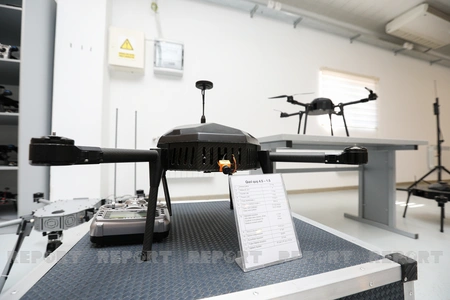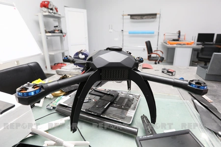 С главным специалистом по автоматике Парка науки и технологий Надиром Бабахановым входим в зал, где испытывают дроны. Он сказал, что в технопарке ведется разработка беспилотников различного назначения: "Сегодня у нас есть 3 основных типа беспилотников. Мы также собираем летательные аппараты по заказу. Например, военного назначения, а также по заказу SOCAR и Министерства сельского хозяйства. Три основных типа дронов - "Альбатрос", более мощные "Гызылгуш", способные перевозить груз в 1,5 кг и летать 30-35 минут, а также дроны типа NF010, оснащенные мультиспектральной камерой. Этот беспилотник анализирует различные растения и удобрения во время полета. Мы записываем миссию для беспилотника, на основе которой он рассчитывает, где и на какой высоте делать снимки. Примерно через 2 часа после взлета мы получаем полную информацию о растениях на территории, где сделаны съемки. Эти беспилотники способны летать в течение 45 минут. Естественно, дальность полета дрона можно увеличивать и уменьшать, это тоже влияет на цену. В настоящее время у нас есть беспилотники, которые могут летать на расстояние до 10 км.