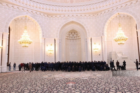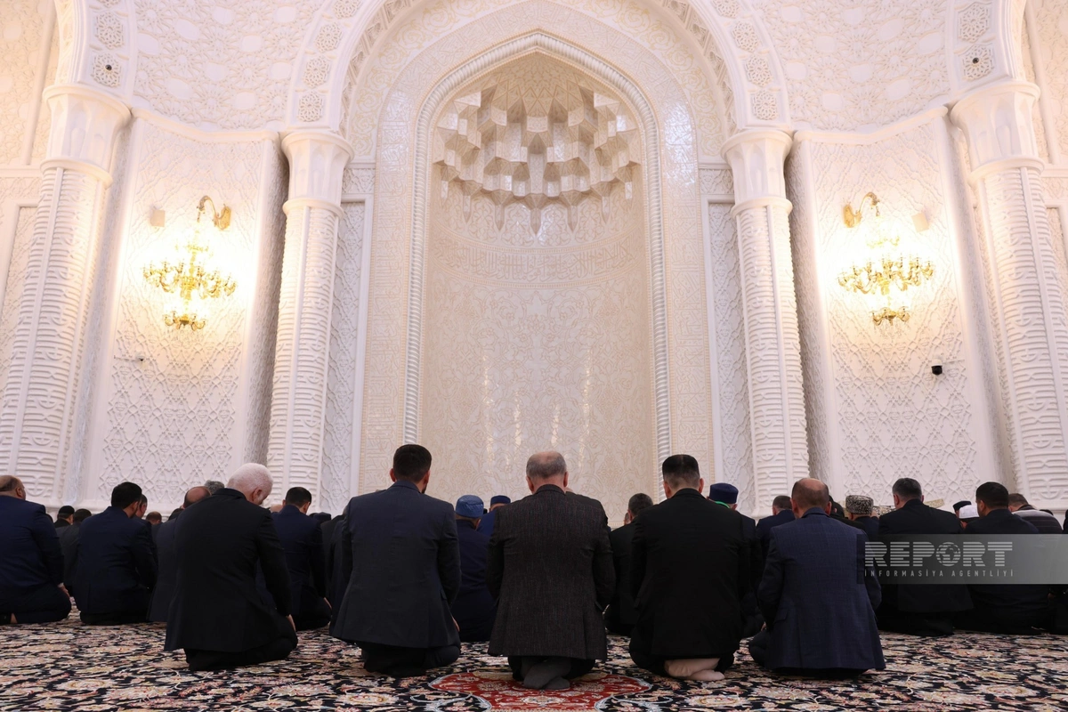Участники II Форума религиозных деятелей, который пройдет в Баку в рамках "Года Конституции и суверенитета", совершили намаз единства в мечети Гейдара.