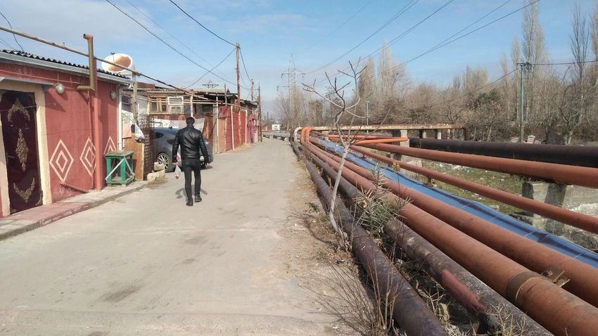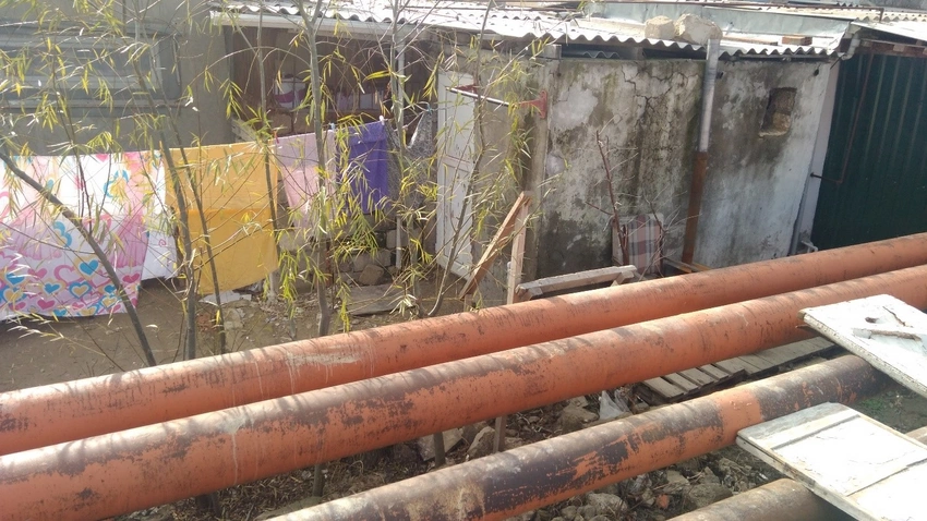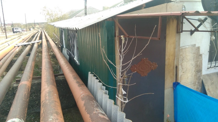 Согласно законодательству, на расстоянии менее 50 метров от трубопровода запрещено проводить любые строительные работы. Но только не здесь. Стены домов не только не отстоят на 50 метров, а упираются в трубопроводы, в редких случаях расстояние между домами и трубопроводами составляет 3-5 метров.