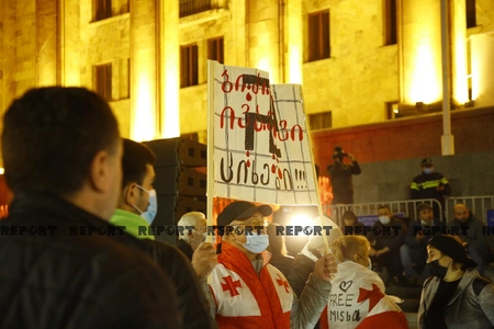 Оппозиционная партия "Единое национальное движение" и ее сторонники провели митинг в Тбилиси у здания парламента с требованием доставить экс-президента Грузии Михаила Саакашвили в гражданскую клинику, а затем освободить.