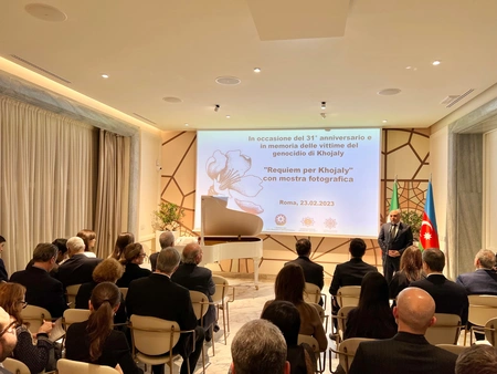 В связи с 31-й годовщиной Ходжалинского геноцида при совместной организации Фонда Гейдара Алиева и посольства Азербайджана в Италии в Центре культуры посольства состоялась церемония почтения памяти, в которой приняли участие члены парламента, государственные, общественные и политические деятели Италии, представители дипломатического корпуса, местных СМИ и азербайджанской общины.