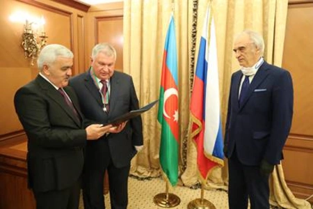 На встрече Полад Бюльбюль оглы зачитал приветствие Президента Азербайджана и вручил орден главному исполнительному директору «Роснефти» И.Сечину.