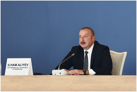Мы также выдвинули предложение о начале делимитации наших границ, потому что самый большой участок нашей границы также находился под оккупацией, и там никогда не проводилась делимитация. Поэтому начался и этот процесс, в прошлом месяце на границе состоялось первое совместное заседание азербайджано-армянской пограничной комиссии. Встреча обеих сторон на границе также носила символический характер. Это одновременно было важным месседжем о том, что в данном вопросе будут подвижки. Конечно, мы понимаем, что это долгий путь, но процесс уже начался. В то же время мы ждем, что Армения будет соблюдать положения подписанного 10 ноября 2020 года трехстороннего Заявления, связанные с открытием коммуникаций, чтобы Азербайджан имел связь с Нахчыванской Автономной Республикой. Прошло более полутора лет после подписания Арменией акта о капитуляции, но, к сожалению, до сих пор ни один выход не обеспечен. Это неприемлемо. Во-первых, это – нарушение Арменией положений трехстороннего Заявления, что создает в регионе своего рода дисбаланс. Потому что Азербайджан взял на себя обязательство по обеспечению беспрепятственного выхода из Армении в Карабахский регион Азербайджана, где проживает армянское население. Таким образом, уже полтора года армяне пользуются Лачинской дорогой и имеют беспрепятственное сообщение. Азербайджанцы же не могут пользоваться дорогой, проходящей через территорию Армении, Зангезурским коридором, соединяющим нас с Нахчываном. Это несправедливо, и мы не согласимся с этим. Целенаправленное затягивание армянской стороной вопроса предоставления нам такого транспортного сообщения бесполезно. Это напоминает мне период прежних переговоров, когда Армения, чтобы выиграть время, постоянно затягивала все вопросы. Чем это закончилось? Результат – полное поражение как на поле боя, так и на политической арене. В итоге идеологическая база Армении была полностью разгромлена. Тридцатилетний период оккупации отнюдь не сделал армянский народ счастливым. Напротив, в глазах мировой общественности они стали оккупантами и агрессорами. После окончании войны уже каждый может видеть, как они разорили эти места в период оккупации.