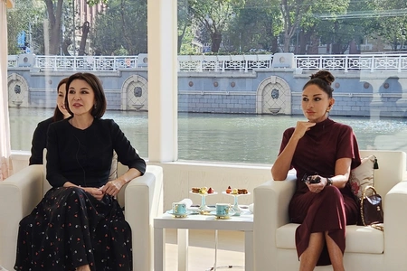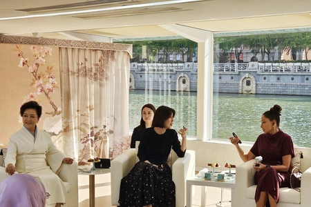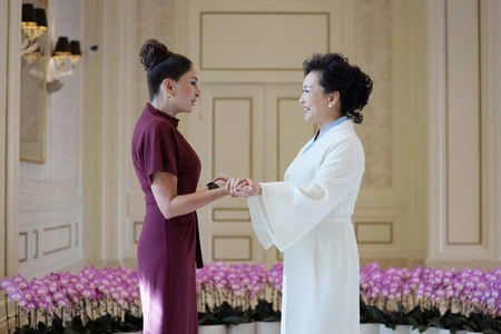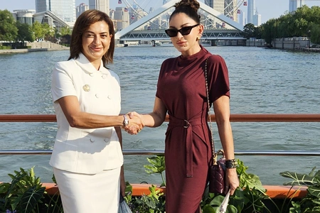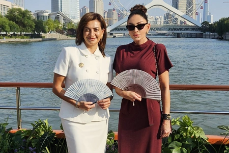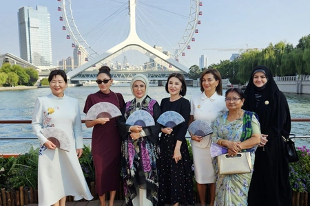 Первая леди Азербайджанской Республики Мехрибан Алиева и ее дочь Арзу Алиева вместе с первой леди Китайской Народной Республики Пэн Лиюань и супругами глав государств и правительств, участвующих во встрече в формате "ШОС плюс", 1 сентября совершили прогулку на лодке по реке Хайхэ в китайском городе Тяньцзинь.