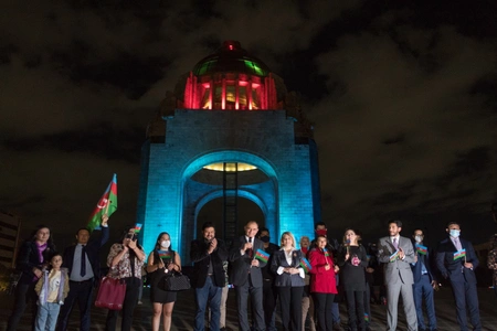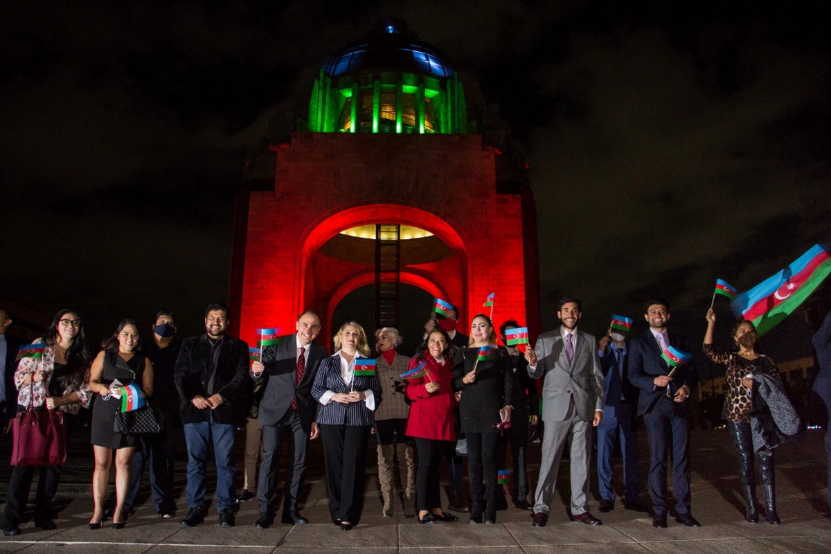 В честь 30-летия восстановления независимости Азербайджана в мексиканской столице Мехико вокруг площади Конституции, где расположены правительственные здания и памятники, в том числе "Монумент Революции", "Ангел Независимости" и другие, подсвечены в цвета государственного флага Азербайджана.