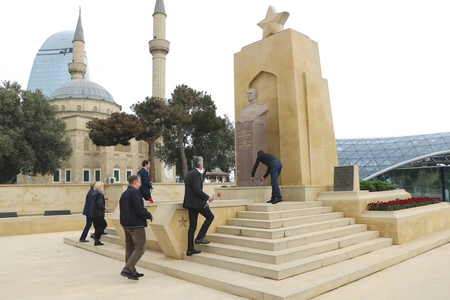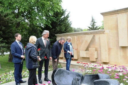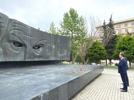 В преддверии 9 мая - Дня Победы над фашизмом в Баку состоялась церемония возложения цветов к Монументу памяти "1941-1945 годы", Памятнику Рихарду Зорге, Памятнику Ази Аланову, Памятнику Мехти Гусейнзаде, Памятнику Габибулле Гусейнову, Памятнику Кафуру Мамедову.