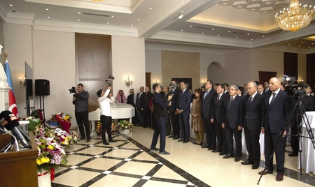 Прием продолжился официальным ужином, на котором прозвучала музыка азербайджанских и мировых композиторов, в частности, великого Узеира Гаджибейли. Гостям были предложены блюда азербайджанской кухни, сладости и национальные напитки.