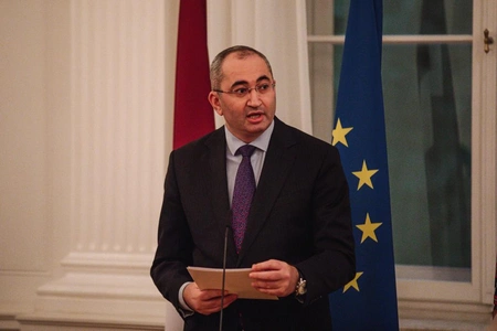 На мероприятии посол Азербайджанской Республики в Латвии Эльнур Султанов зачитал поздравительное письмо Президента Азербайджанской Республики Ильхама Алиева, адресованное Вайре Вике-Фрейберге.