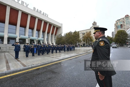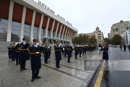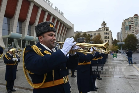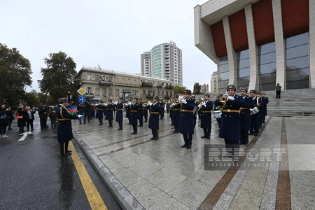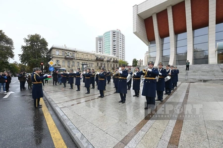 Торжественный марш в сопровождении военных оркестров по случаю 8 ноября - Дня Победы состоялся в Баку по еще одному маршруту.