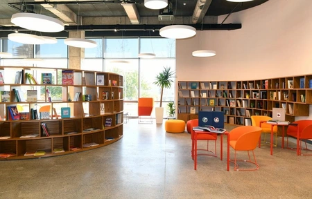 В центре также создана библиотека. Здесь собраны азербайджанская национальная литература, а также книги на иностранных языках по обучению различным профессиям и специальностям. В библиотеке планируются создание уголков из книг, написанных шрифтом Брайля, для развития художественного творчества лиц с нарушением зрения, проведение презентаций книг лиц, имеющих инвалидность, дней чтения с участием известных писателей, дней автографа местных и зарубежных писателей.