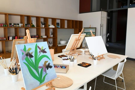 В студии прикладного искусства планируется обучать рисованию масляными красками, акварелью на полотне, граффити и тушью на бумаге, витражными красками на стекле, водяными красками на шелке. В студии одновременно могут заниматься 10 человек в возрасте старше 5 лет, а в течение дня - две группы.