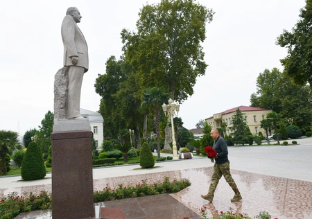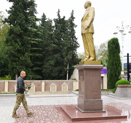 Как передает Report, глава государства возложил венок к памятнику общенациональному лидеру Гейдару Алиеву в центре Тертера.