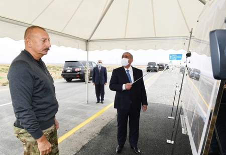 Президент Ильхам Алиев открыл автомобильные дороги, ведущие к поселку Суговушан и поселку Талыш Тертерского района.