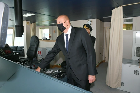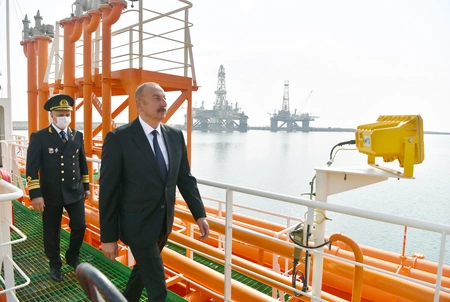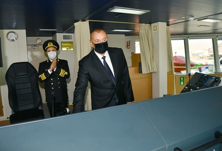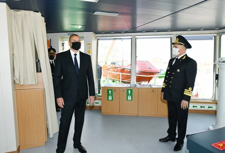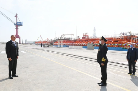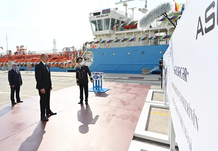 Президент принял участие в церемонии сдачи в эксплуатацию нефтеналивного танкера "Кяльбаджар"