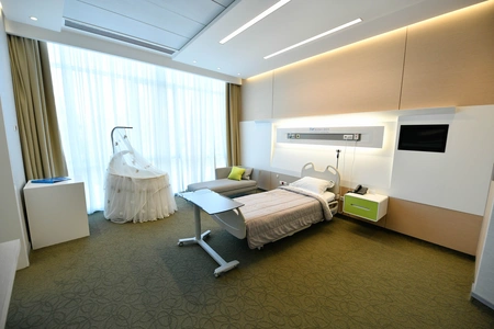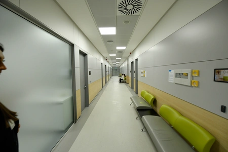В больнице на 8209 коек - 12 операционных и 2 кабинета ангиографии, 156 коек стационарных пациентов, отделение общей реанимации на 28 коек, помещение реанимации отделения сердечно-сосудистой хирургии на 6 коек, отделение реанимации новорожденных на 7 коек и отделение неотложной помощи на 12 коек.