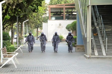 Bakı Şəhər İcra Hakimiyyətinin Mətbuat Xidmətindən "Report"a verilən məlumata görə, icra hakimiyyəti tərəfindən ümumşəhər dezinfeksiya həftəsi elan edilib və bu tədbirlər çərçivəsində bu gün, avqust ayının 14-ü səhər saatlarından etibarən şəhərin mərkəzi və qəsəbələrdəki əsas küçə, prospekt və yollarda xüsusi kimyəvi maddələrlə növbəti dəfə əlavə gücləndirilmiş dezinfeksiya işləri aparılır.