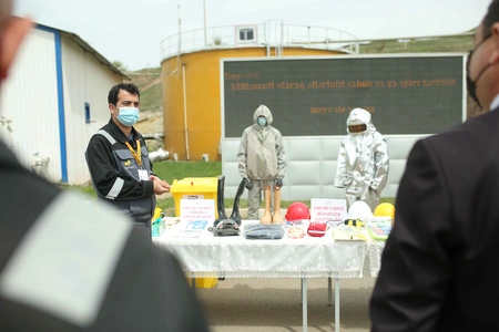 “AzerGold” QSC-nin İdarə Heyəti sədrinin müavini Oqtay Məmmədov qonaqlara əməyin mühafizəsi və texniki təhlükəsizlik sahəsində görülən işlər barədə ətraflı məlumat verib. Sədr müavini işçilərin sağlamlığının qorunması, təhlükəsiz iş mühitinin yaradılmasının “AzerGold”un əsas öncəliyi olduğunu vurğulayıb.