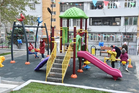 "Report" xəbər verir ki, yenilənmiş həyət Bakının Yasamal rayonu, Yeni Yasamal yaşayış massivi 2 bina 4 və 5 ünvanında 2000 nəfər sakinin yaşadığı binaları əhatə edir.