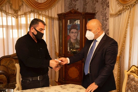 S.Mehdiyev ailələrə təqaüd kartını və “Şəhid ailəsi üzvü” vəsiqəsini təqdim edib, onların sosial vəziyyətinin həmişə diqqətdə saxlanacağını vurğulayıb.