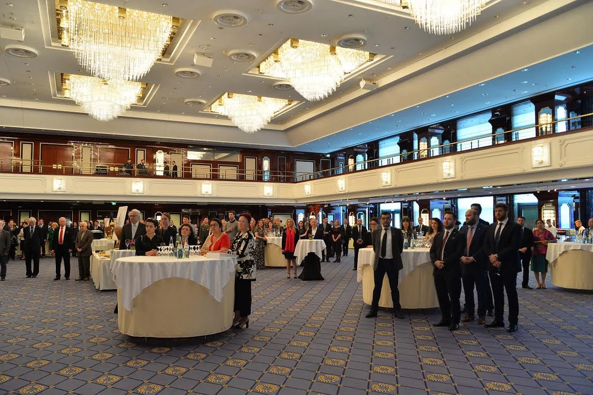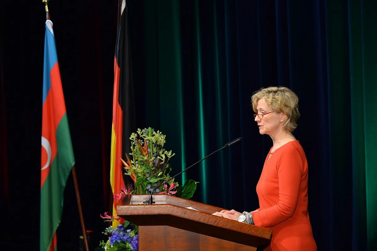 Azərbaycanın Almaniyadakı səfirliyindən "Report"a verilən məlumata görə, tədbirdə əvvəlcə Azərbaycan və Almaniyanın dövlət himnləri səsləndirilib.