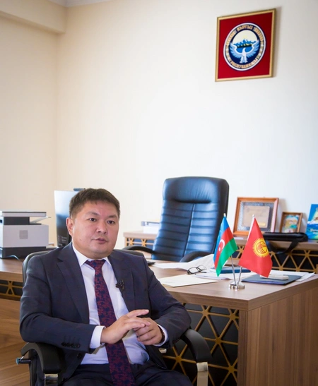 Səfir Kayrat Osmonaliyev Qırğız Respublikası ilə Azərbaycan arasında münasibətlərin vəziyyəti və cari dinamikası, həmçinin ikitərəfli əməkdaşlığın strateji tərəfdaşlıq səviyyəsinə çatdırılması ilə bağlı əldə olunmuş razılaşmaların icrası barədə məlumat verib.