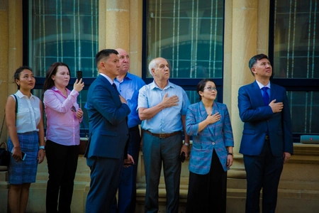 Qırğız Respublikasının müstəqilliyinin 30 illiyi münasibətilə bu ölkənin Azərbaycandakı səfirliyində 2 ölkənin milli bayraqlarının qaldırılması mərasimi keçirilib.