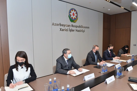 Xarici İşlər Nazirliyindən “Report”a verilən məlumata görə, görüş zamanı Ceyhun Bayramov qardaş Türkiyənin nümayəndə heyətini səmimiyyətlə salamlayaraq, Azərbaycan və Türkiyə arasında mövcud yüksək səviyyəli əməkdaşlıq və tərəfdaşlıq münasibətlərin son zamanlar intensiv şəkildə inkişafından məmnunluqla bəhs etdi.