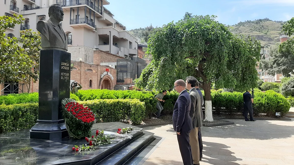 Mərasim iştirakçıları Heydər Əliyevin Rustavi şəhərindəki abidəsini də ziyarət edərək ulu öndərin xatirəsini ehtiramla yad ediblər.