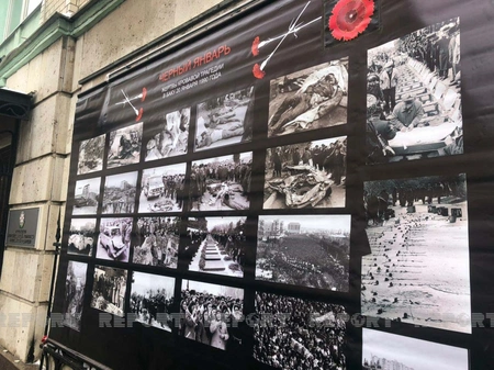 “Report”un Rusiya bürosunun məlumatına görə, Azərbaycan səfirliyinin qarşısında 20 Yanvar qəhrəmanlarının xatirəsinə stend qurulub və istəyən hər kəs bura gül dəstələri qoya, faciənin günahsız qurbanlarının xatirəsini ehtiramla yad edə bilər.