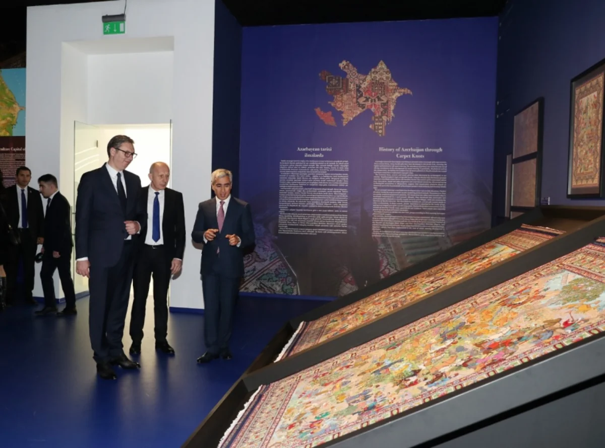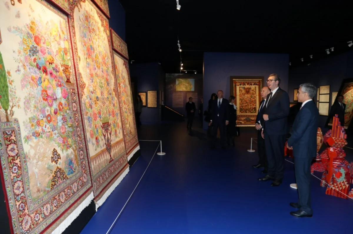 Aleksandar Vuçiç Mərkəzdə “Azərbaycan inciləri” sərgisi ilə də tanış olub. Bildirilib ki, Azərbaycanın tarixini və mədəniyyətini əks etdirən bu sərgidə ölkəmizin tükənməz təbii sərvətləri, çoxəsrlik tarixi, mədəni irsi ilə bağlı nadir eksponatlar nümayiş etdirilir. Burada qədim peşələrin, o cümlədən Azərbaycan xalçaçılıq məktəbinin nadir nümunələri sərgilənir, qədim çalğı alətlərimiz orijinal şəkildə - səsli formada təqdim olunur. Azərbaycan milli geyimlərinin, qədim sikkələrin nümayiş etdirildiyi sərgiyə gələnlər burada müxtəlif dillərdə müqəddəs kitabları da görə bilərlər.