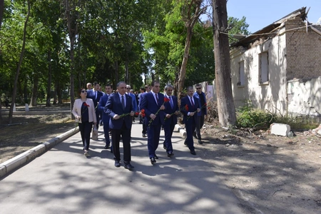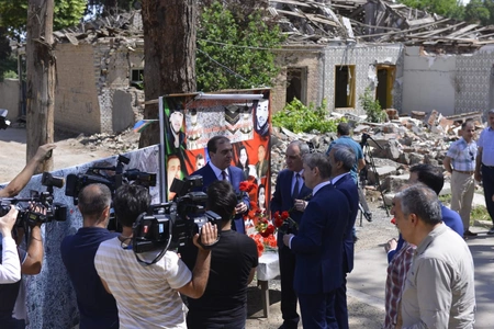 Nümayəndə heyəti erməni terroru zamanı həlak olan dinc sakinlərin xatirəsinə ehtiram əlaməti olaraq, dağılmış evlərin ətrafına gül düzüb.