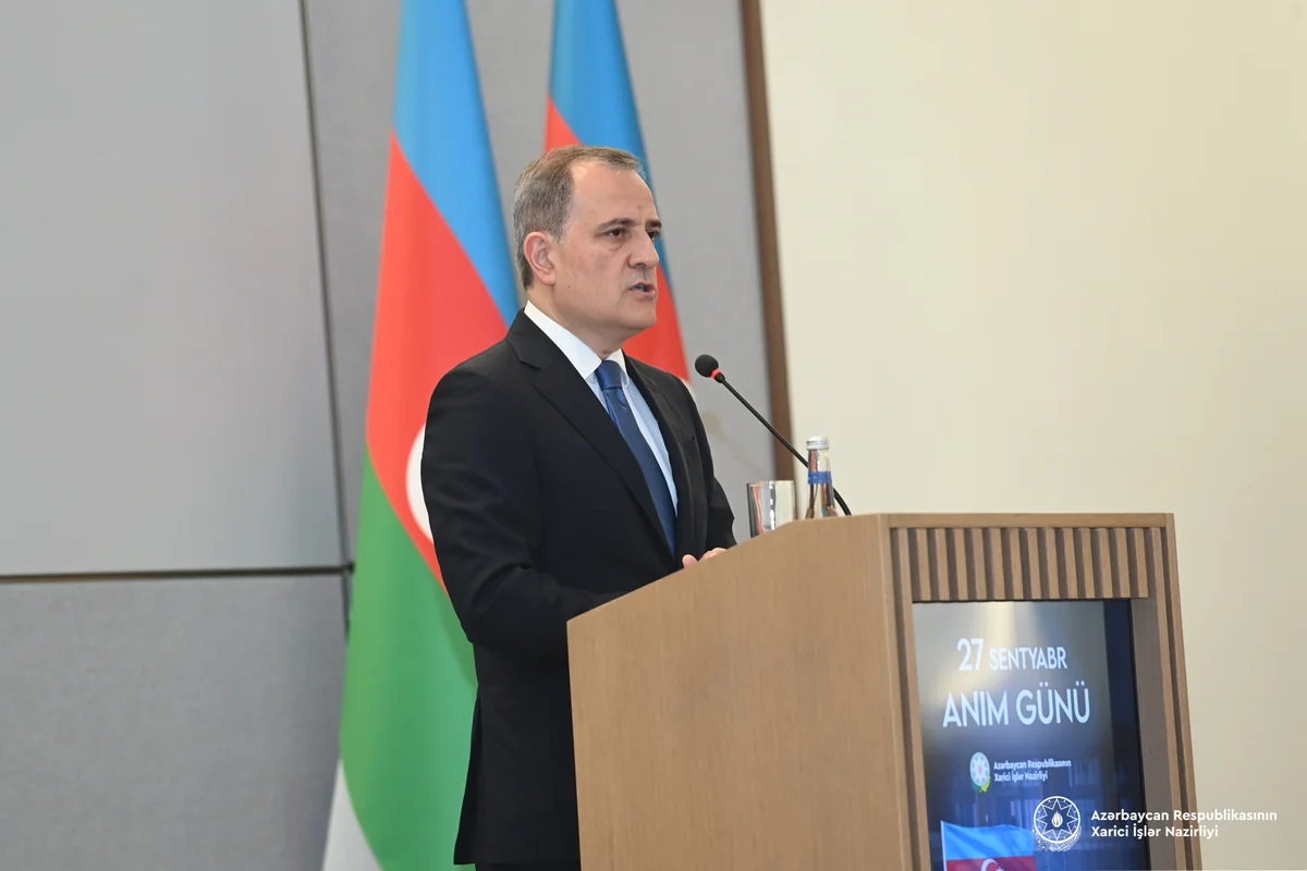 Anım tədbirində çıxış edən Azərbaycan Respublikasının xarici işlər naziri Ceyhun Bayramov, müasir tariximizin ən şanlı səhifələrindən biri olan 44 günlük Vətən müharibəsi nəticəsində Ermənistanın 30 ilə yaxın hərbi işğalına son qoyulduğunu, ərazi bütövlüyümüz ilə yanaşı, tarixi ədalətin və beynəlxalq hüququn bərpa olunduğunu diqqətə çatdırıb. Azərbaycan Respublikasının Prezidenti, Müzəffər Ali Baş Komandanın rəhbərlik etdiyi Azərbaycan Ordusunun bu qəhrəmanlıq salnaməsinin tariximizə qızıl hərflərlə həkk olunduğunu diqqətə çatdırıb.